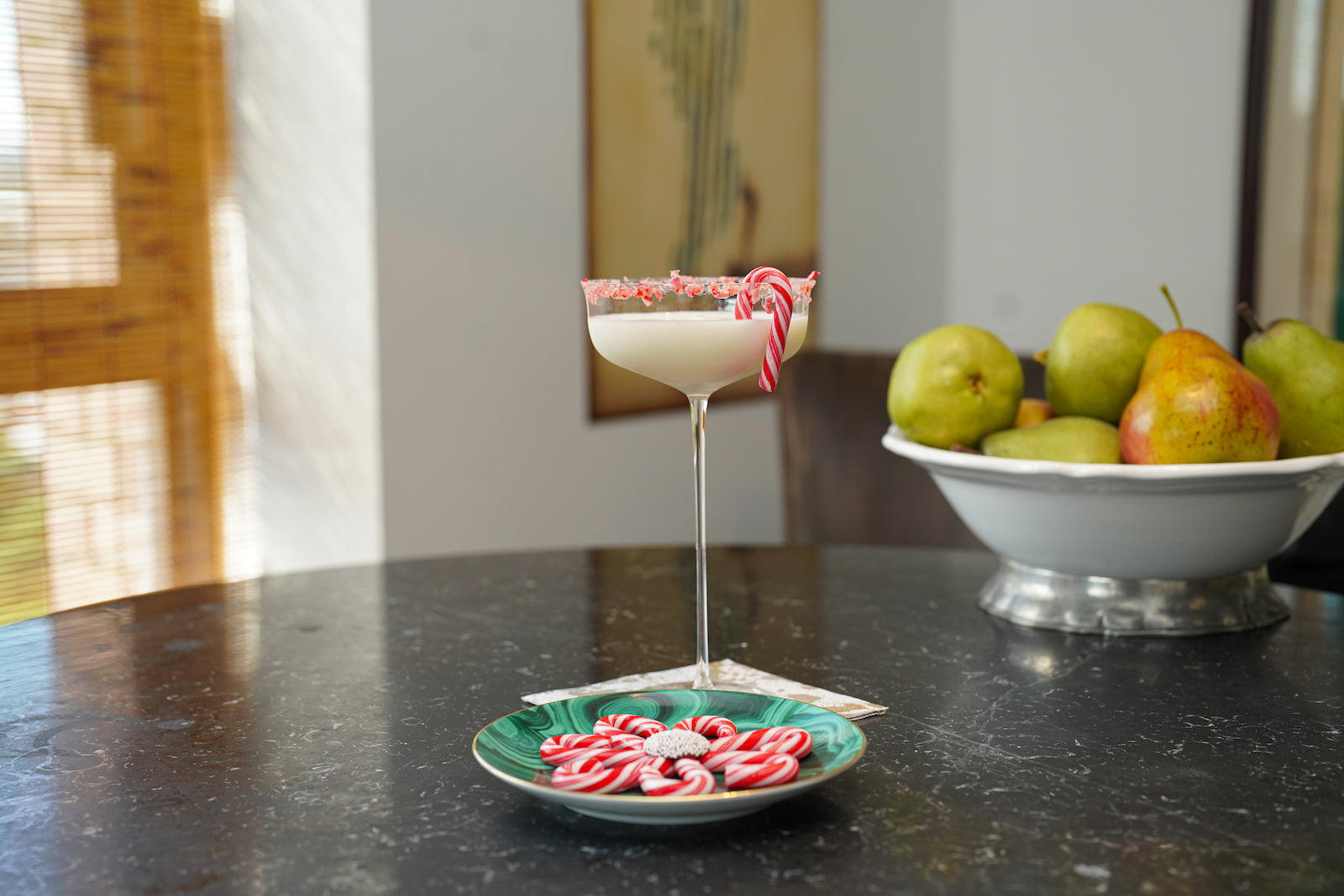 - Rim the glass with crushed candy canes for a festive touch